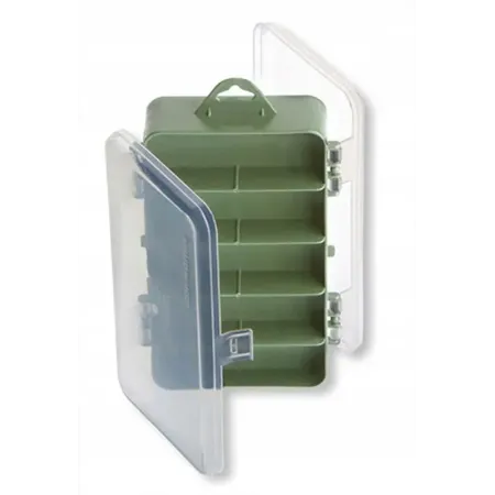 Podwójne pudełko na przynęty i akcesoria z 5 długimi przegrodami po jednej stronie i 8 po drugiej.